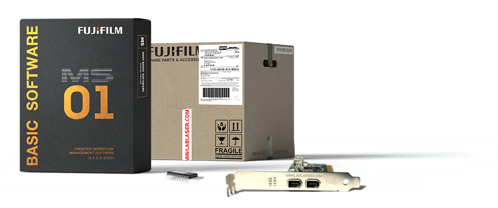 The FMP Controller can process print data from a digital camera and from a film simultaneously to reduce the printer non-operating time and the operator’s waiting time for increased work efficiency, thereby increasing the processing capability of Digital Minilab Frontier.